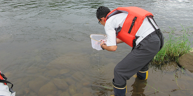 Kioxia Iwate Corporation participated in the Iwate Prefecture Aquatic Life Survey.1 In 2024, the company conducted a survey of the Waga River, which flows through the southwest part of Iwate Prefecture. The presence of indicator species such as the flat-headed mayfly confirmed that the water environment was clean. Through this initiative, we are promoting the preservation of aquatic ecosystems and collaboration with the local community.
