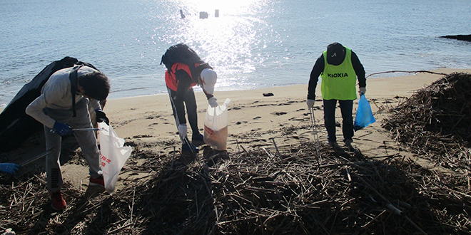 Kioxia Corporation’s Yokkaichi Plant participates in cleanup activities at Yoshizaki Beach (Kusu Town, Yokkaichi City, Mie Prefecture), organized by the Kusu Town Development Committee and the NPO Yokkaichi Sea Turtle Preservation Society, with the aim of preserving the nesting environment of the endangered loggerhead turtle.2 In 2024, over 200 people—including plant employees and their family members—participated in the cleanup activities, helping to protect the environment where loggerhead turtles lay their eggs, and to deepen their understanding of the ecosystem and the importance of conservation efforts.