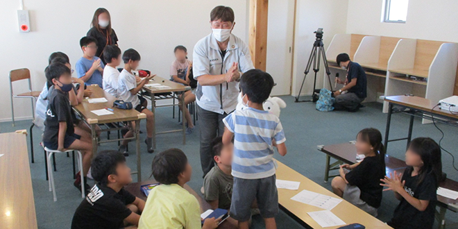 キオクシア(株)四日市工場では、近隣の学童保育所や「四日市公害と環境未来館」において、「こども環境講話」を実施しています。2024年は約70名の小・中学生が参加し、環境を守るために日々の生活の中でできることについてアイデアを出し合い、地球温暖化の影響と省エネルギーの大切さについて考える機会となりました。