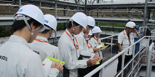 キオクシア(株)四日市工場は、地域の大学生が対象の環境インターンシップを開催しています。2024年は6名の学生が、環境施設や環境測定の説明と見学をとおして、環境保全の業務とその重要性に触れました。